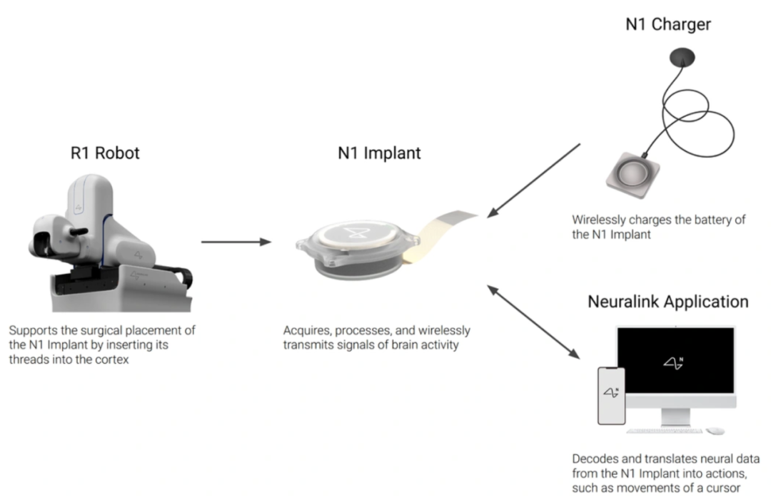 手术由Neuralink自主研发的R1机器人完成,芯片通过1024个柔性电极接入大脑运动皮层,术后系统可实时采集神经信号并通过蓝牙无线传输到外部设备。